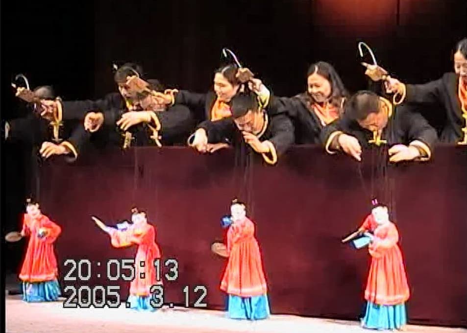 何人もで 1つの木偶を操る見事なテクニック。