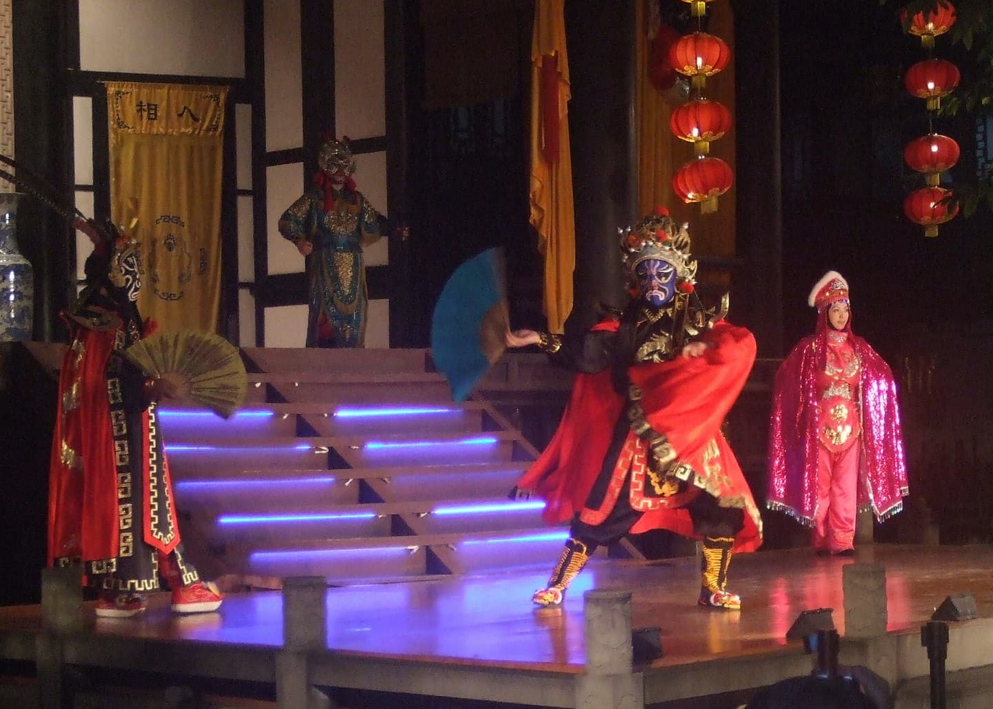 変臉は川劇の目玉。それまでに色々な芸人が出演する。