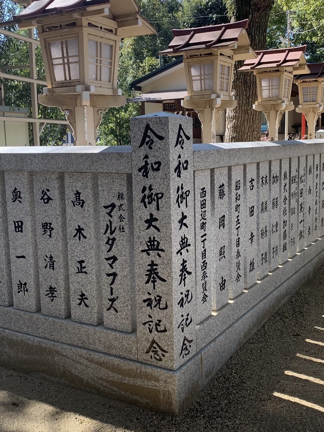 山坂神社を初めて訪ねたのは第50回璞社書展記念DVD撮影のためでした。先生と自転車で田辺界隈を廻る計画です。当然小坂先生所縁の法楽寺にも立寄り撮影もしました。自転車に乗りながら「北條この辺りでなあ・・・」と昔話を伺いながら、自転車を止めて撮影をするのです。本殿には先生の力強い扁額作品が数点納められていて感動したことを改めて思い出しました。境内には「令和御大典奉祝記念」石柱が設置されていました(写真1)先生の文字が刻まれた最後のものです。徒歩で散策しましたが、ご一緒した当時の事をとても懐かしく感じました。