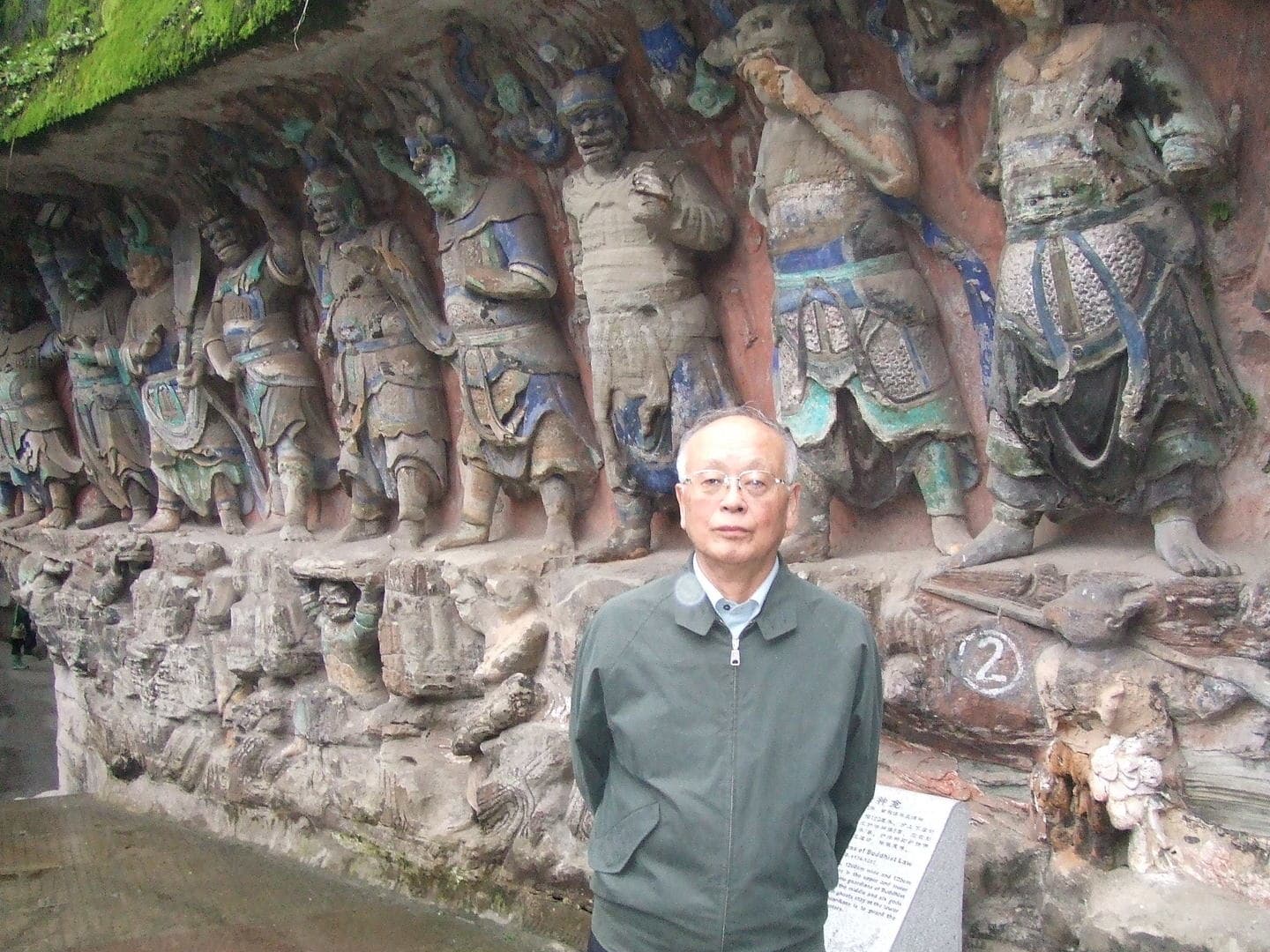峨眉山を後に再び成都へ。微妙に予定時間が狂い始めます。記録では14時の下山が17時前になっています。翌日の重慶へは「高速道路ばかり」と甘く見たのが大間違い。途中寄った土産物店。今回初!そして明日夜はもう日本!人数は約40名。ニタリと笑う土産物屋にヒキツル我。それはエライ事でした。巴蜀の都成都を漸く後にして、向かうは世界遺産「大足(ダイソク)石刻」です。世界遺産登録後経過時間が短く資料も少な目「大したことなく終われる」と思ったのがまたも失敗。今となってはこんな世界遺産を観られることはないでしょう。石刻の入口は粗末な鉄の扉で、簡単な鍵を職員が掛けているだけ。ほぼむき出しの石刻は触りたい放題です。それだけに皆さんのテンションは上がります。文革の影響が全く無く、ほぼ完全な状態で残されたのは何よりも人里離れた辺鄙な場所にあったことだとか。全長31㍍の釈迦涅槃像は圧巻です。感動に包まれ出発が惜しまれ、閉門時間を過ぎてまでこの地に留まりました(写真2,3)。