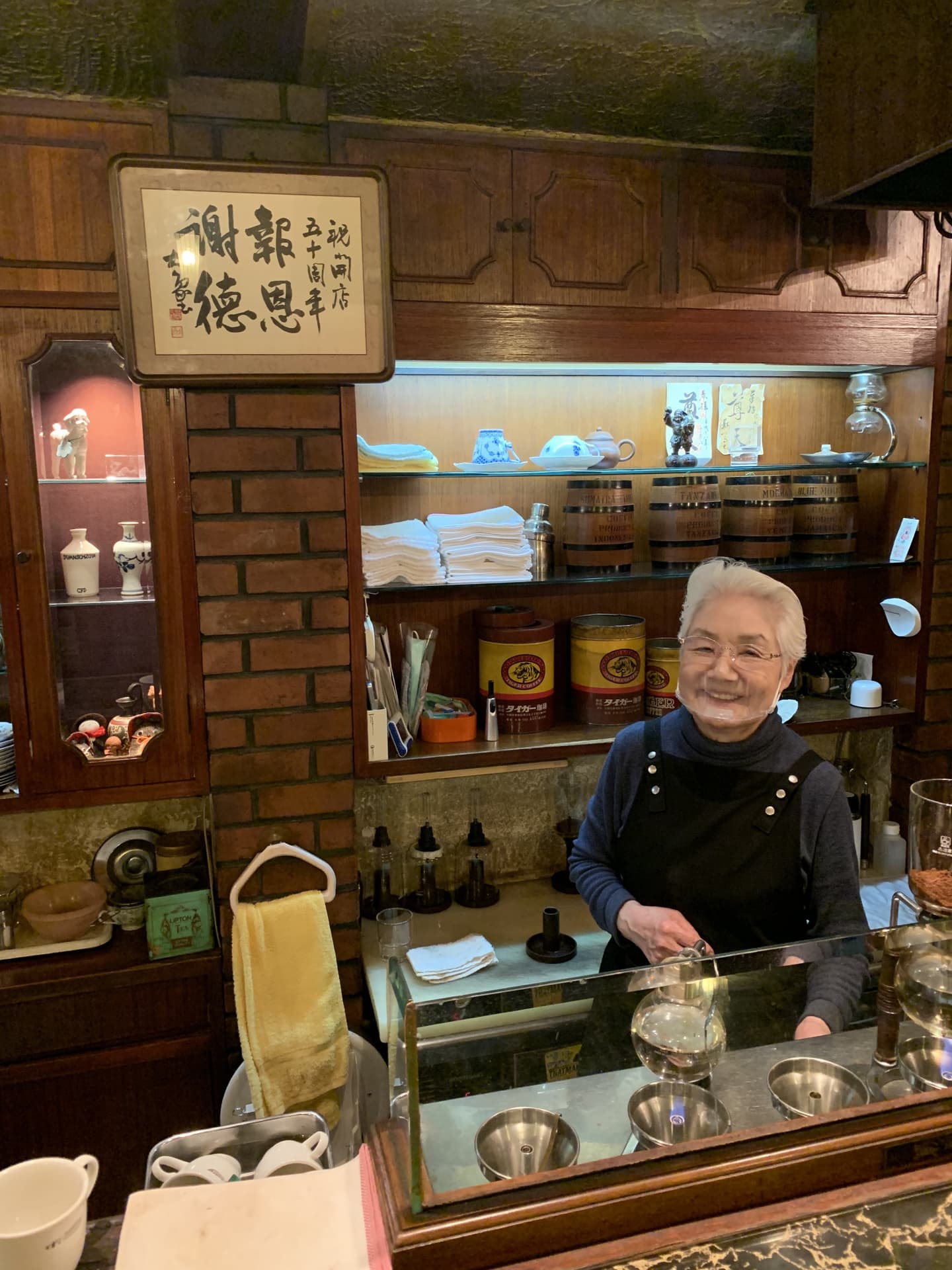 「北條、明日朝やったら梵におるで」先生と急ぎ打合せしないといけない時に何度かこのようなことがありました。南田辺本通商店街の入口近くにある珈琲専門店「梵」先生が毎朝通われた店です。山坂神社からも歩いて数分。先生の作品が街中に溢れています。カウンター一番奥が指定席。先生の作品が店内いっぱいに掛かっています。「先生が来はれようになって寂しいてかなわん」というママとの思い出話に、飛び切り美味い珈琲を頂いていると、いつもの席で新聞を読む先生がいらっしゃるようでした(写真1)。