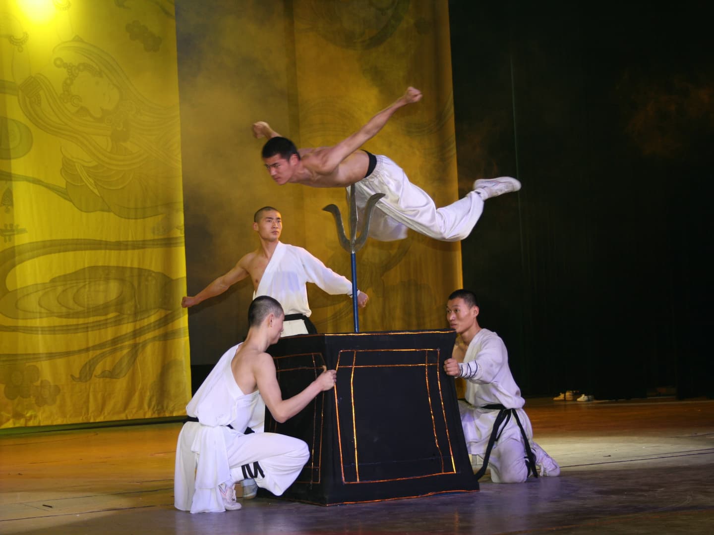 旅行2日目は浙江省の省都「杭州」泊まり。「恋の都」とも呼ばれ、人民が新婚旅行で最も訪ねる人気スポット。美しい街です。夕食後の楽しみは、趣向を凝らした演劇鑑賞でしょう。題名は「西湖之夜」雑技を中心に、少林寺拳法の演武を取り入れ、優美でかつ迫力満点。退屈させない舞台です(写真5)。