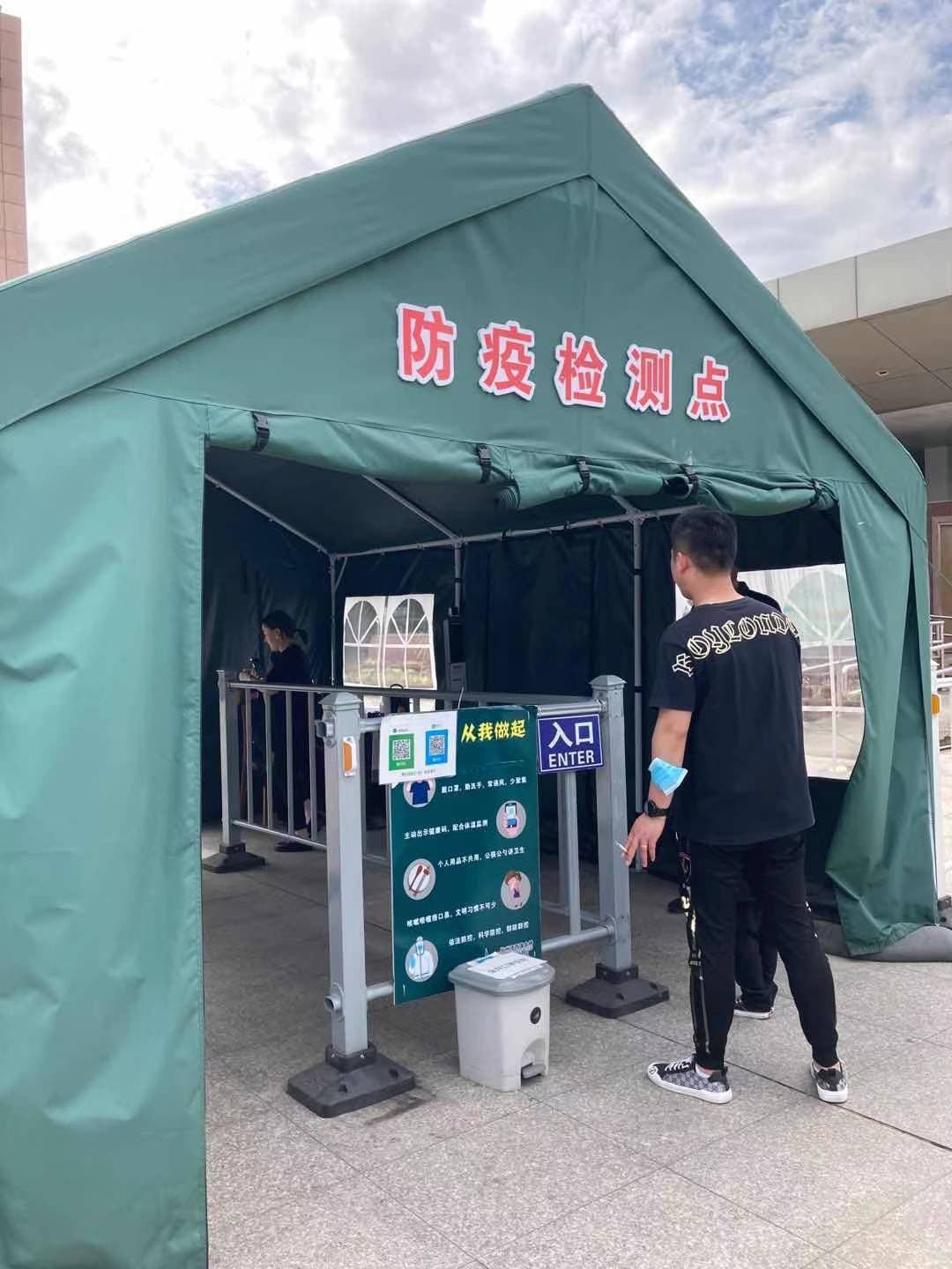 西側諸国ではそれ程話題にもならない中国産ワクチン。「武漢のウイルス」なんて言うなら、本当は中国製が1番効くのと違うの?知らんけど。写真3は上海のワクチン接種会場です。市内には多くの会場があり、接種が進んでいます。Greenパスを入手したチョイ悪君の友人は目的地へ移動します。途中立寄ったサービスエリアの検査場。往来の多い場所では建物の外で体温検査がされています。このような場所は簡易的ですが、宿泊などの場合、身分証にGreenパスの提示に加え、体温検査が必須です(写真4)。
