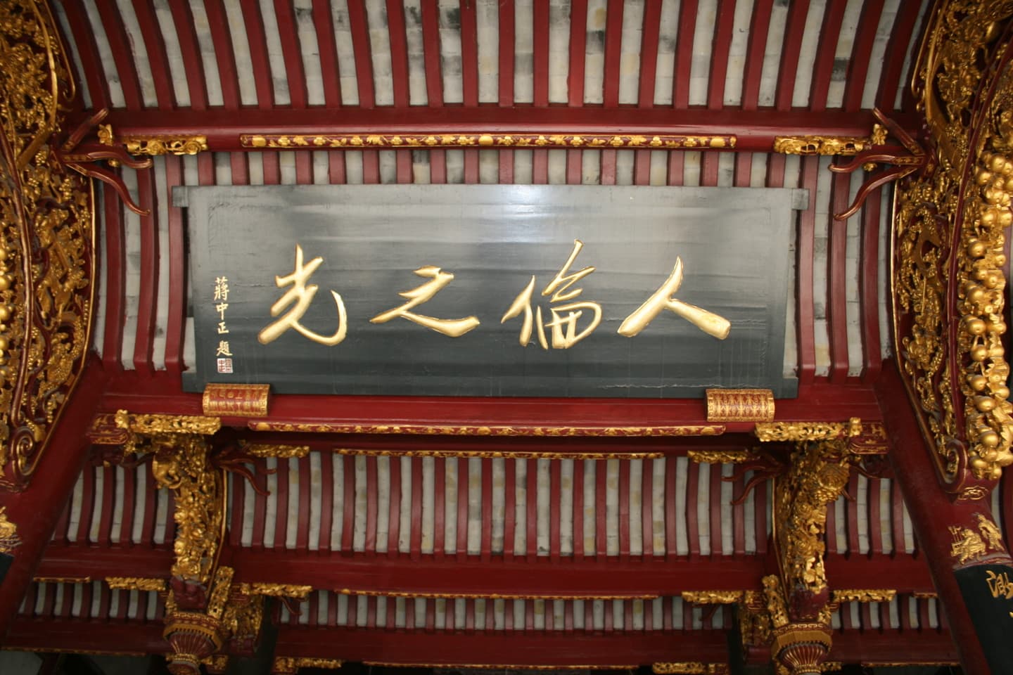 前号紹介の上虞(ジョウグ)は杭州と寧波の中央付近に位置する街。倪元璐の出身地です。この地で観た曹娥(ソウガ)孝女(コウジョ)廟(ビョウ)。後漢時代の曹娥という孝行娘を祀る廟です。廟の前を流れる曹娥江に咲く菜の花が印象的でした。廟の入り口に掛かる扁額「人倫之光」蒋介石の書です。地方部といえ内戦・文革を経て今も美しく残っているのは、蒋介石が地元寧波の出身だからなのでしょう(写真2,3)。