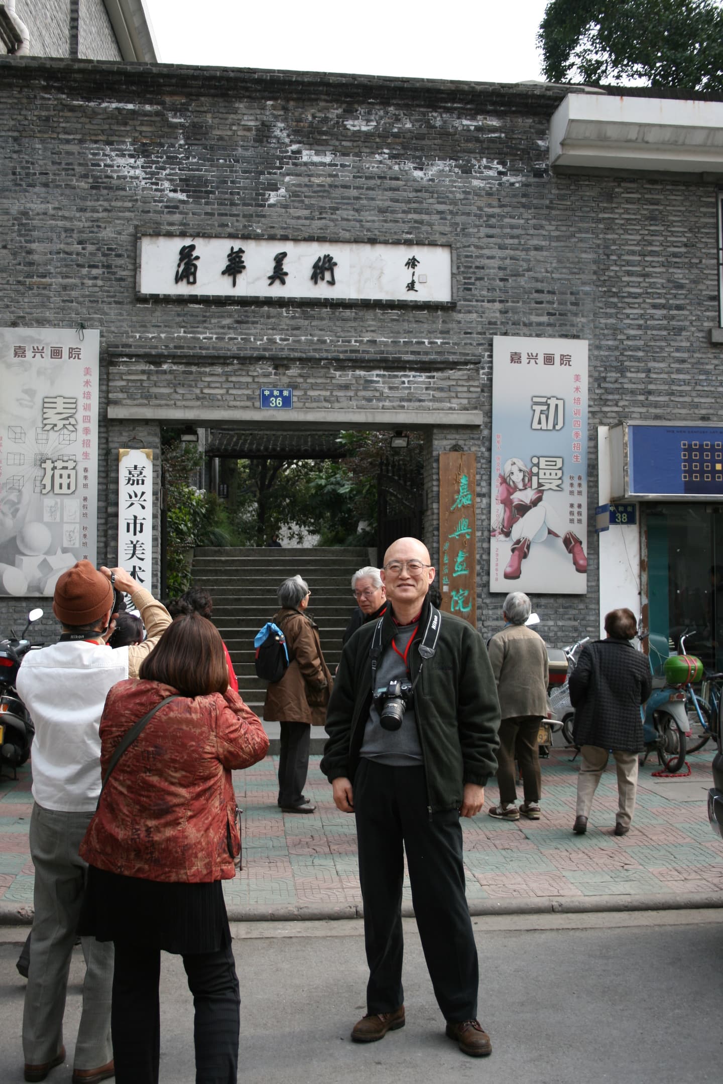 到着地上海からバス移動で到着したのは嘉興。ちょうど上海と杭州の中間付近です。粽と清朝時代の画家で書家の「蒲華」の出生地です。まずは美術館へ「なんも無いなあ~」と先生「以前はあったのになあ~」と龍洲先生。江南の文人美術など分かる訳も無い私の頭の中は粽だけ。美術館の真向かいに五芳齋の本店があります。先生も早速召し上がられました(写真2,3、4、5)。